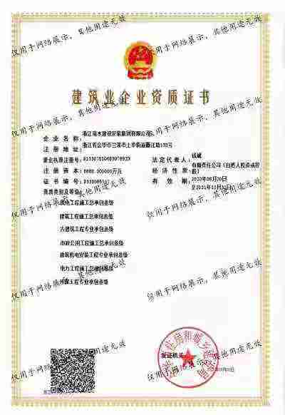 浙江清水建設安裝集團有限公司成立于2013年,注冊資金6688萬元。集團具有消防設施工程專業承包壹級、城市與道路照明專業承包壹級、電子與智能化專業承包壹級、建筑裝飾裝修專業承包貳級、防水防腐保溫專業承包貳級、市政工程施工總承包貳級、機電工程施工總承包貳級、建筑工程施工總承包貳級、電力工程施工總承包貳級、機電工程專業承包貳級、環保工程專業承包貳級、古建筑工程專業承包貳級、特種工程結構補強專業承包、建筑施工勞務作業專業承包(憑建筑業企業資質證書經營